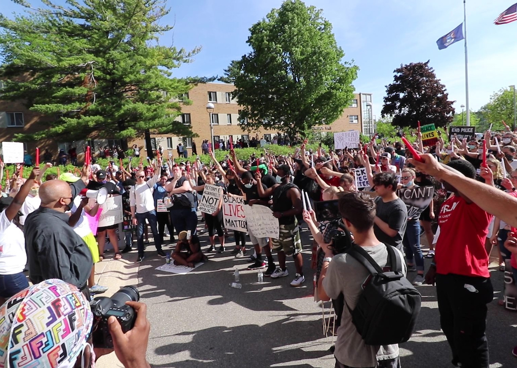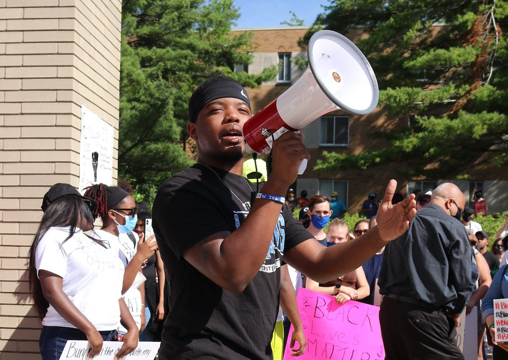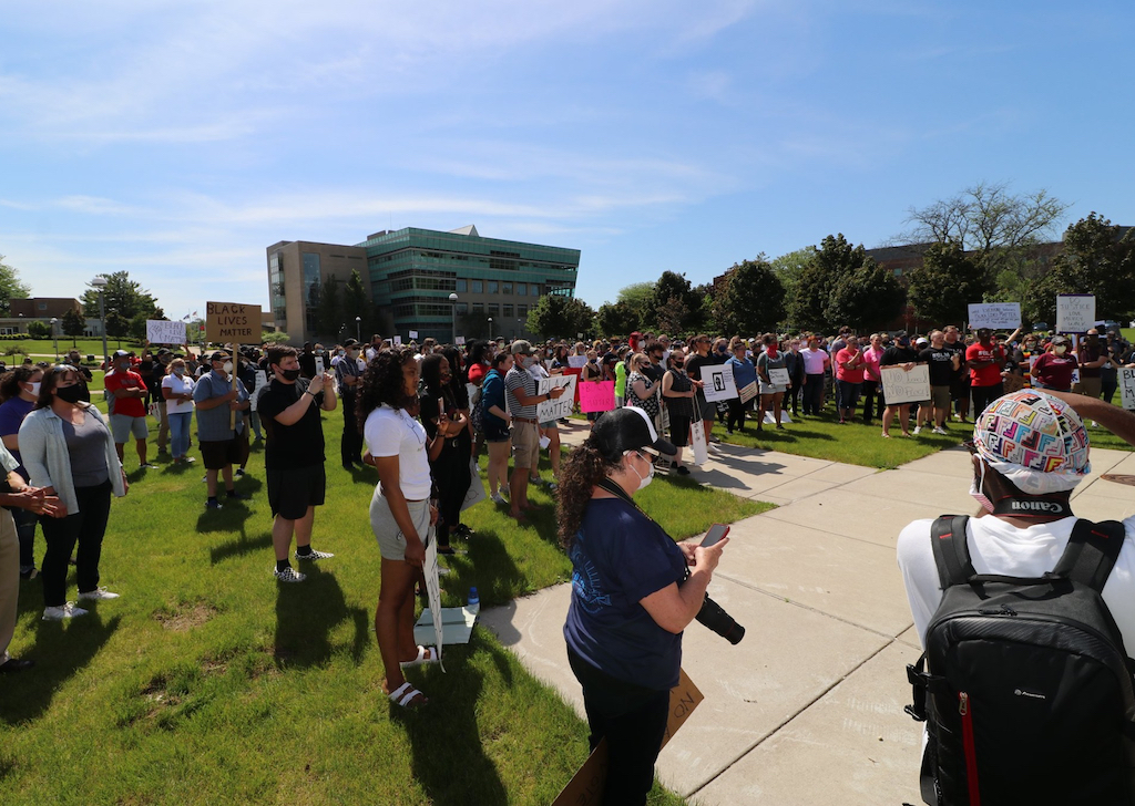 Approximately 400 students, faculty, staff and community members participated in an “Enough Is Enough” protest for social justice on June 3, 2020. Speakers included Ferris student activist and event coordinator Byron Brooks; Ferris Public Safety Director Bruce Borkovich; Ferris President David Eisler; Ferris Vice President for Diversity, Inclusion and Strategic Initiatives David Pilgrim; and City of Big Rapids Mayor Thomas Hogenson.