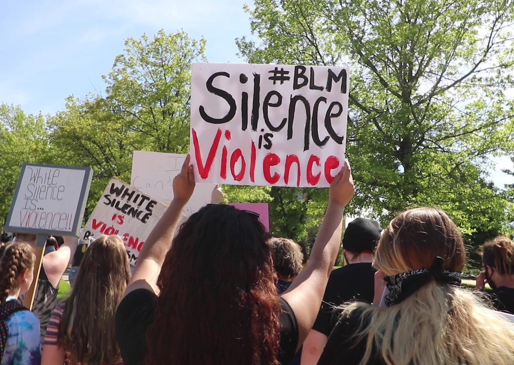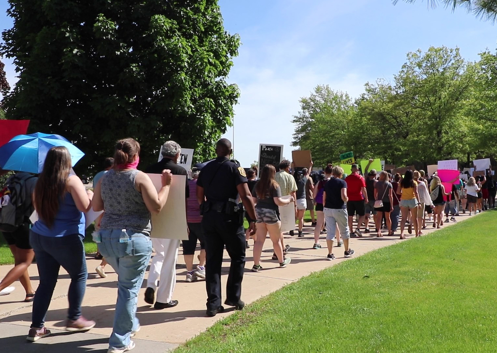 Below: Scenes from the Enough Is Enough protest that took place on Ferris State University’s Big Rapids campus on June 3. (Credit: Hannah Crouch)